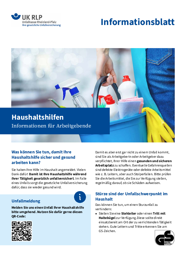 - Informationsblatt der UK RLP: Gesetzliche Unfallversicherung für Beschäftigte privater Haushalte