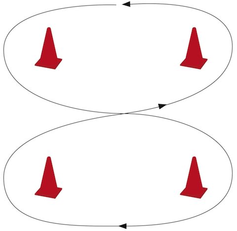 Es gibt eine Vielzahl von Laufwegen, z. B. gerade aus, diagonal, im Kreis, im Slalom …